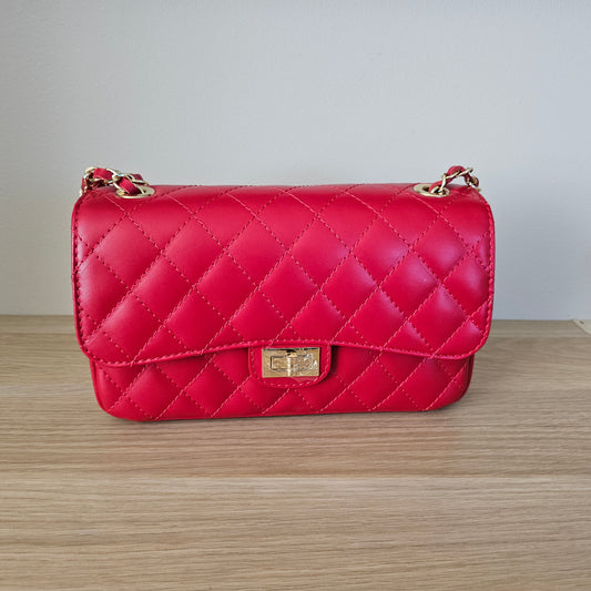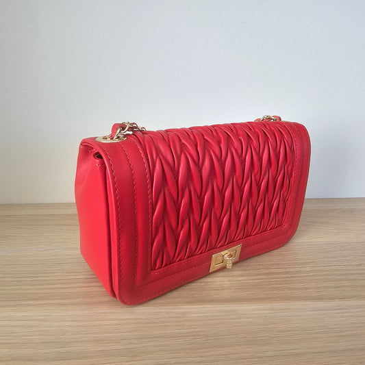 Massimo Contti Luxury Brand - Ítalskur rauð leðurtaska með keðjum
