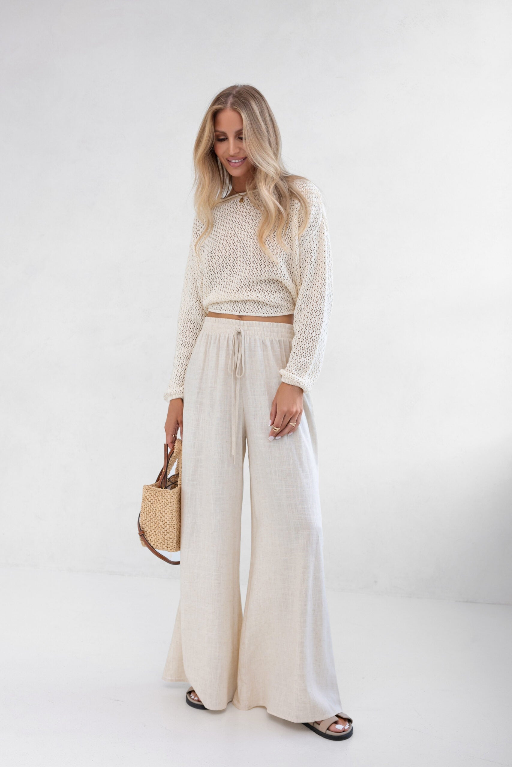 Sweater. Side sleeve. Under the neck. Side sleeve. Decorated tie on the back. In two colors.