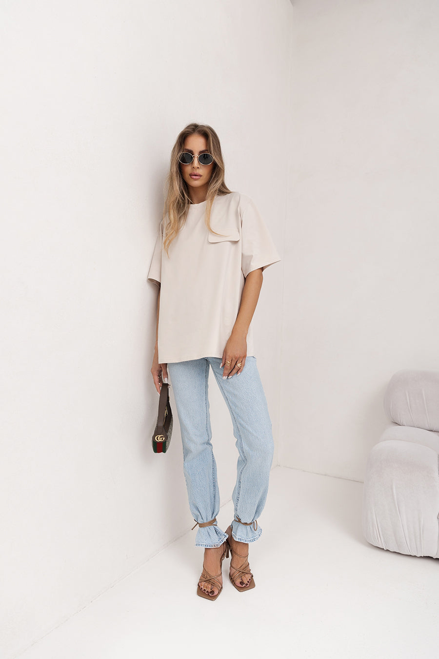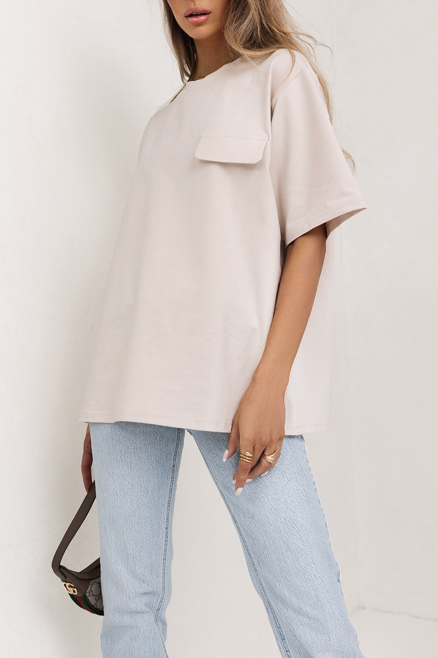 T-Shirt. Sensitive. Decorative patch. One size. In several fashionable colors.