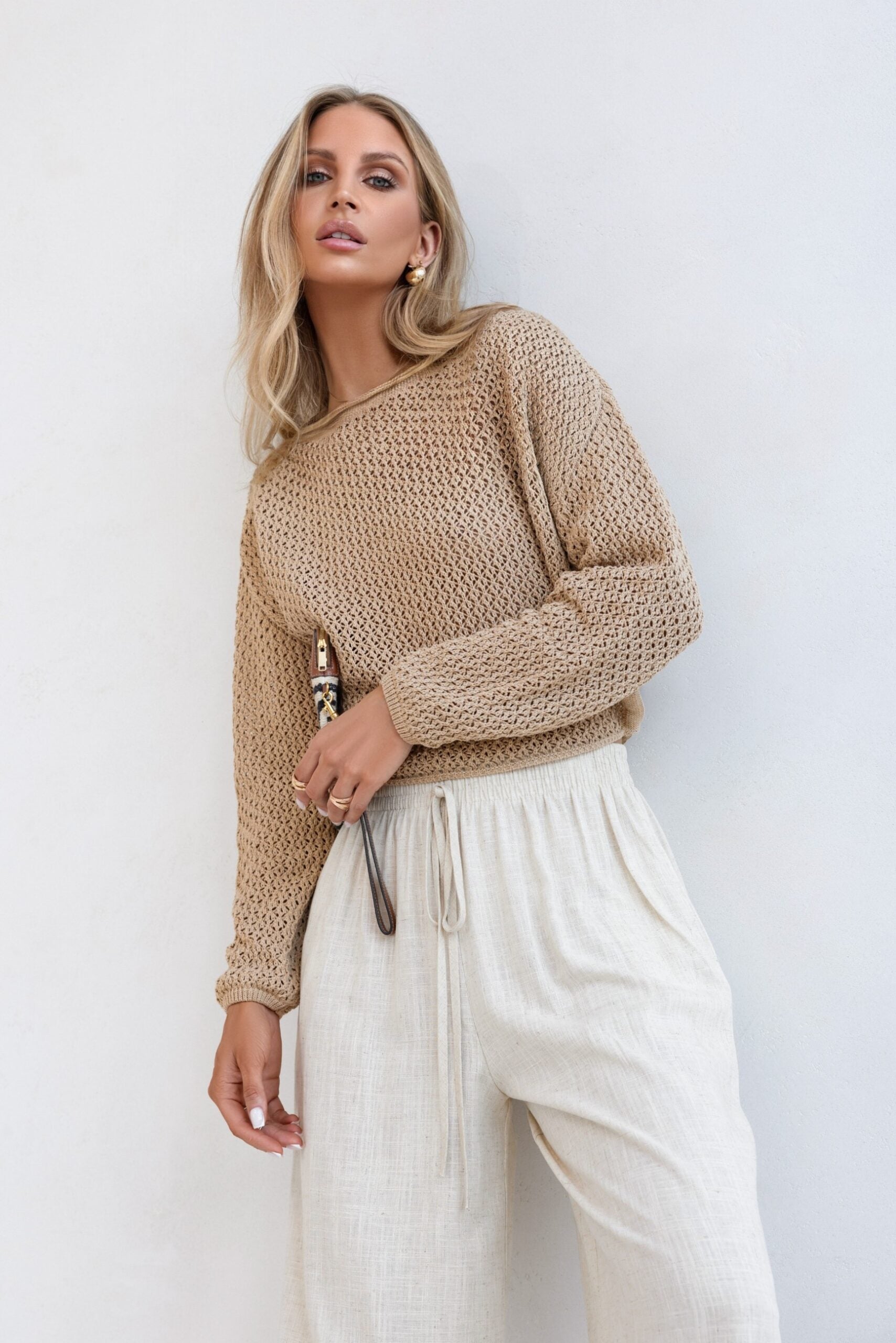 Sweter. Rękaw boczny. Pod szyją. Rękaw boczny. Ozdobne wiązanie z tyłu. W dwóch kolorach.