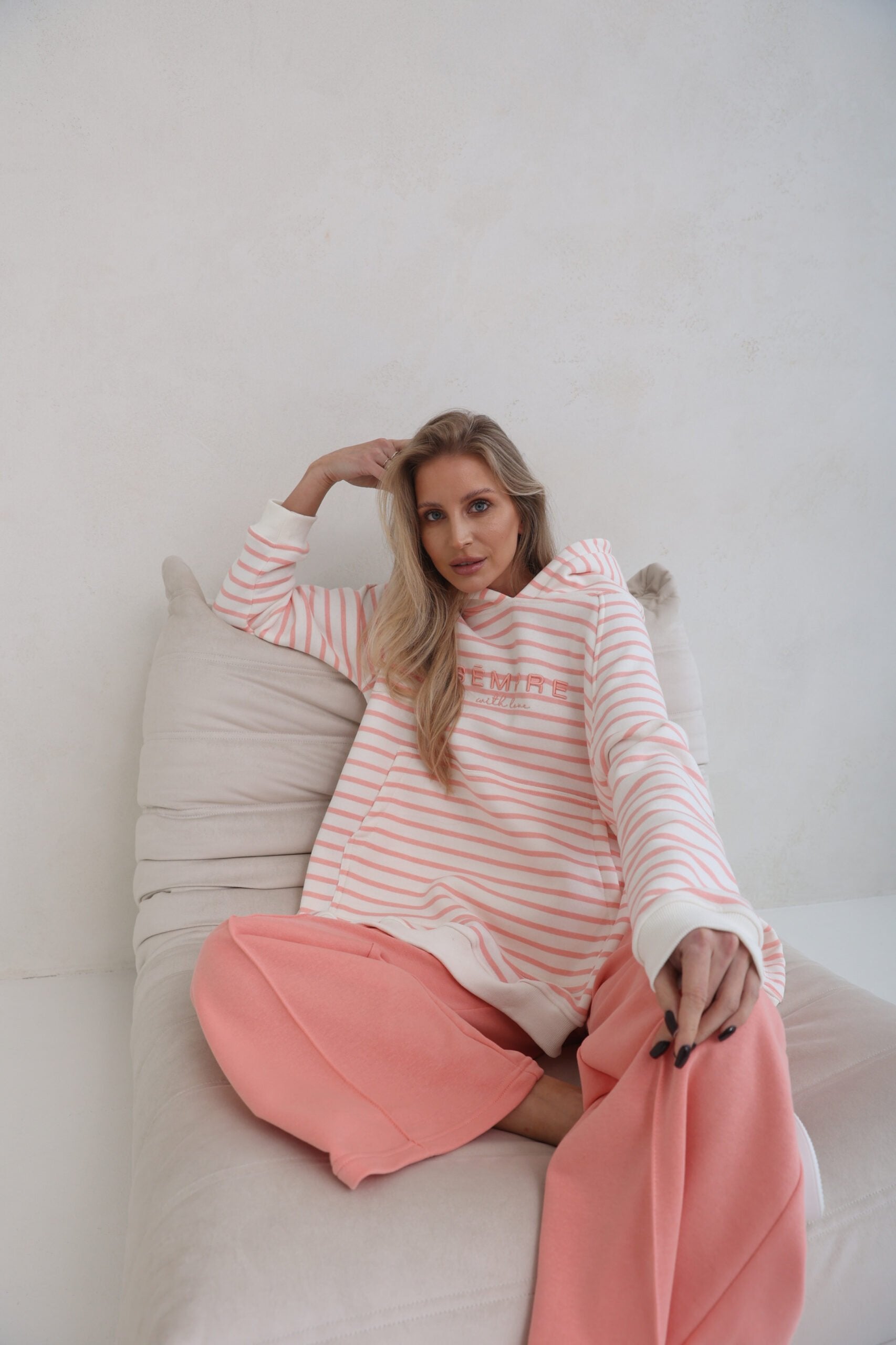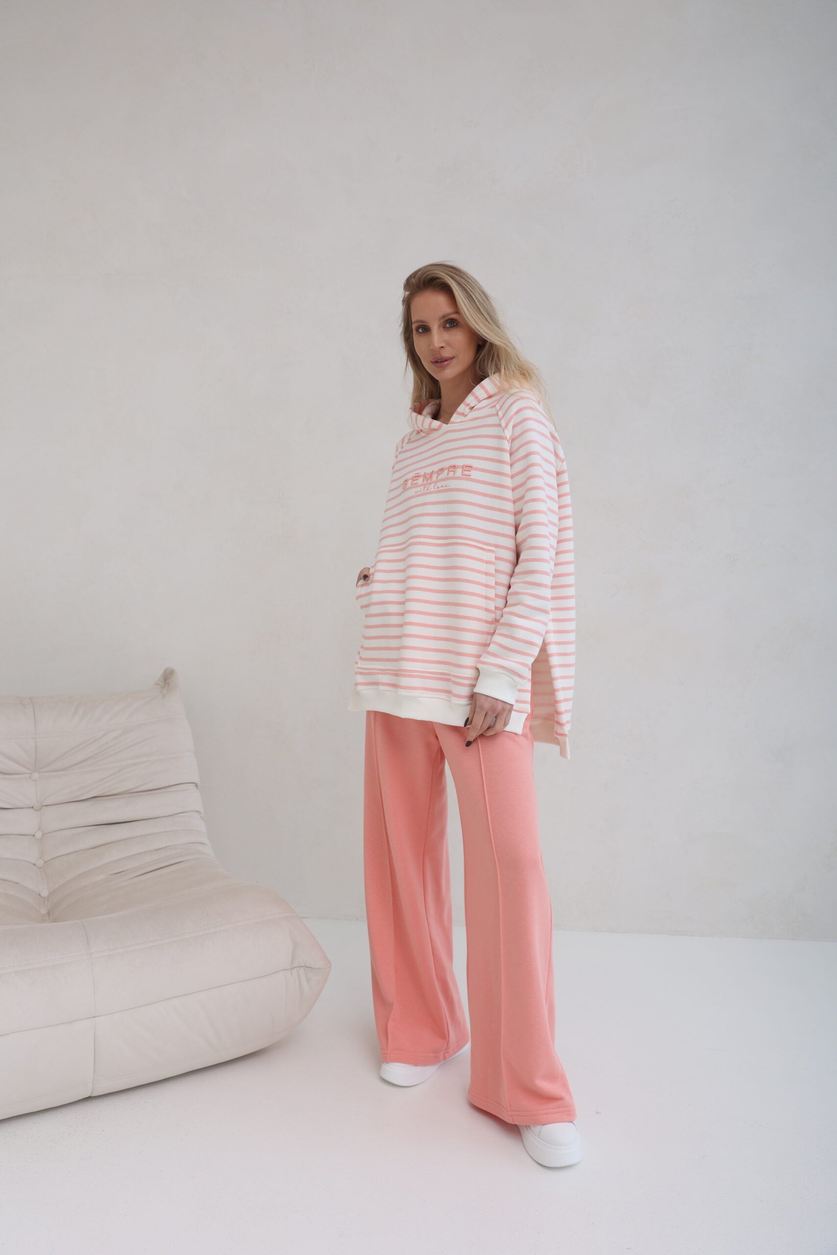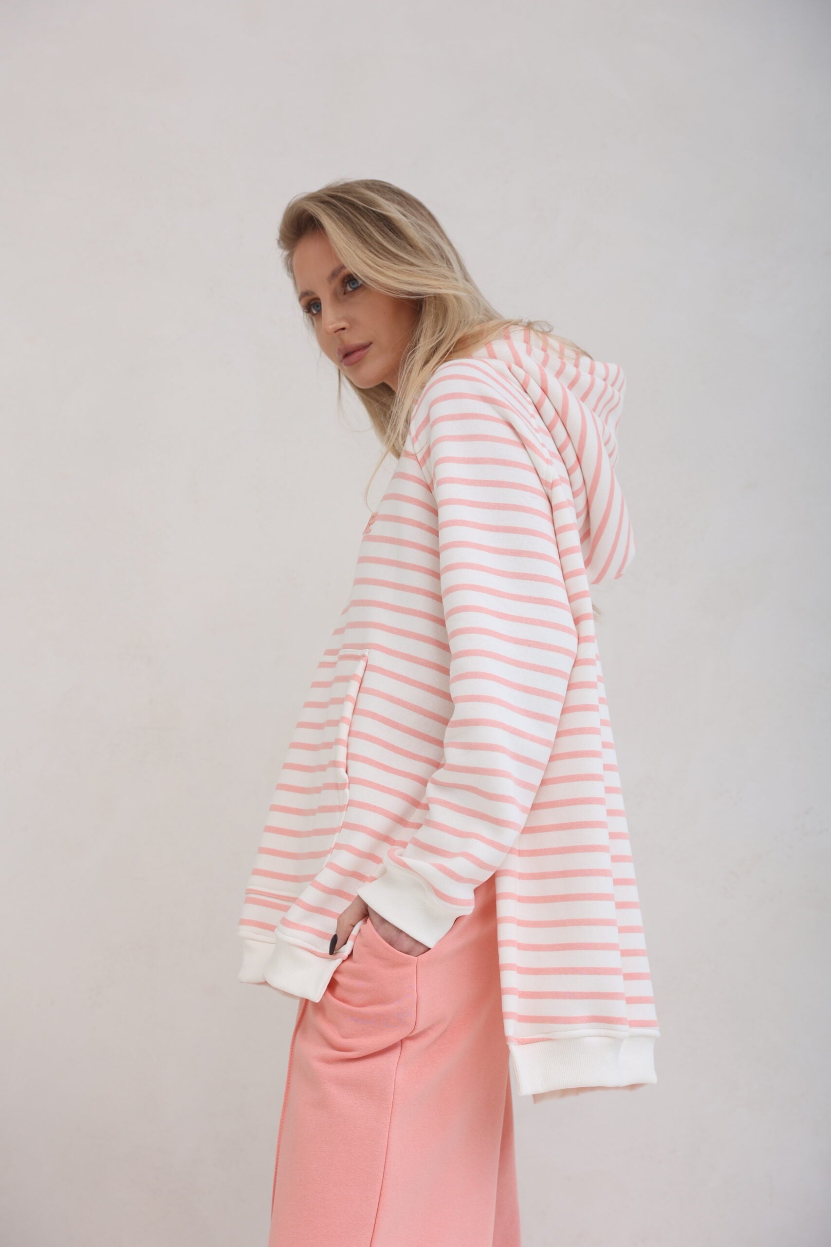 Bluza oversize. Duży kaptur i kieszeń. Dwie szczeliny po bokach. Z haftem z logo.