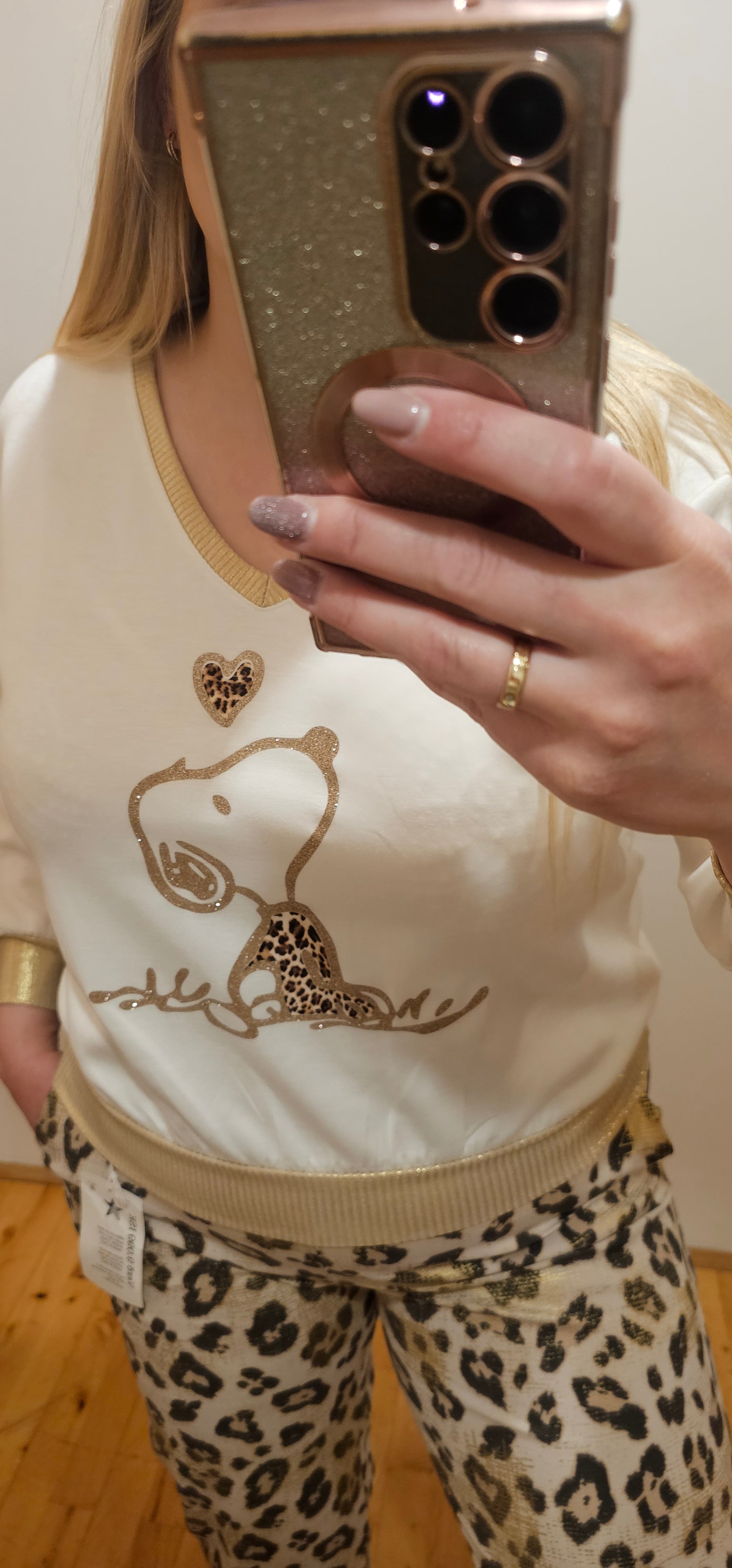 Snoopy peysur með hlébarða mótíf. Golden Hem