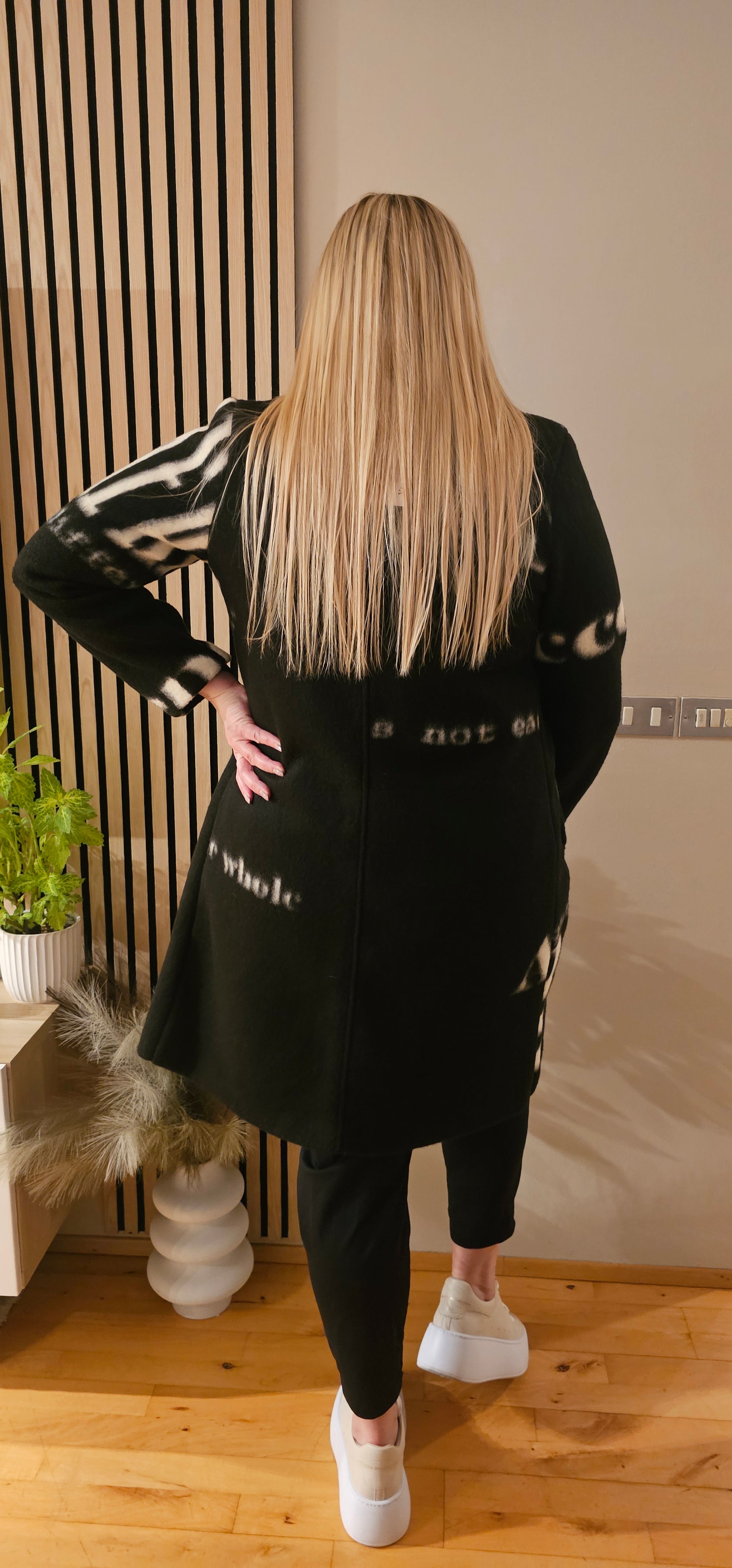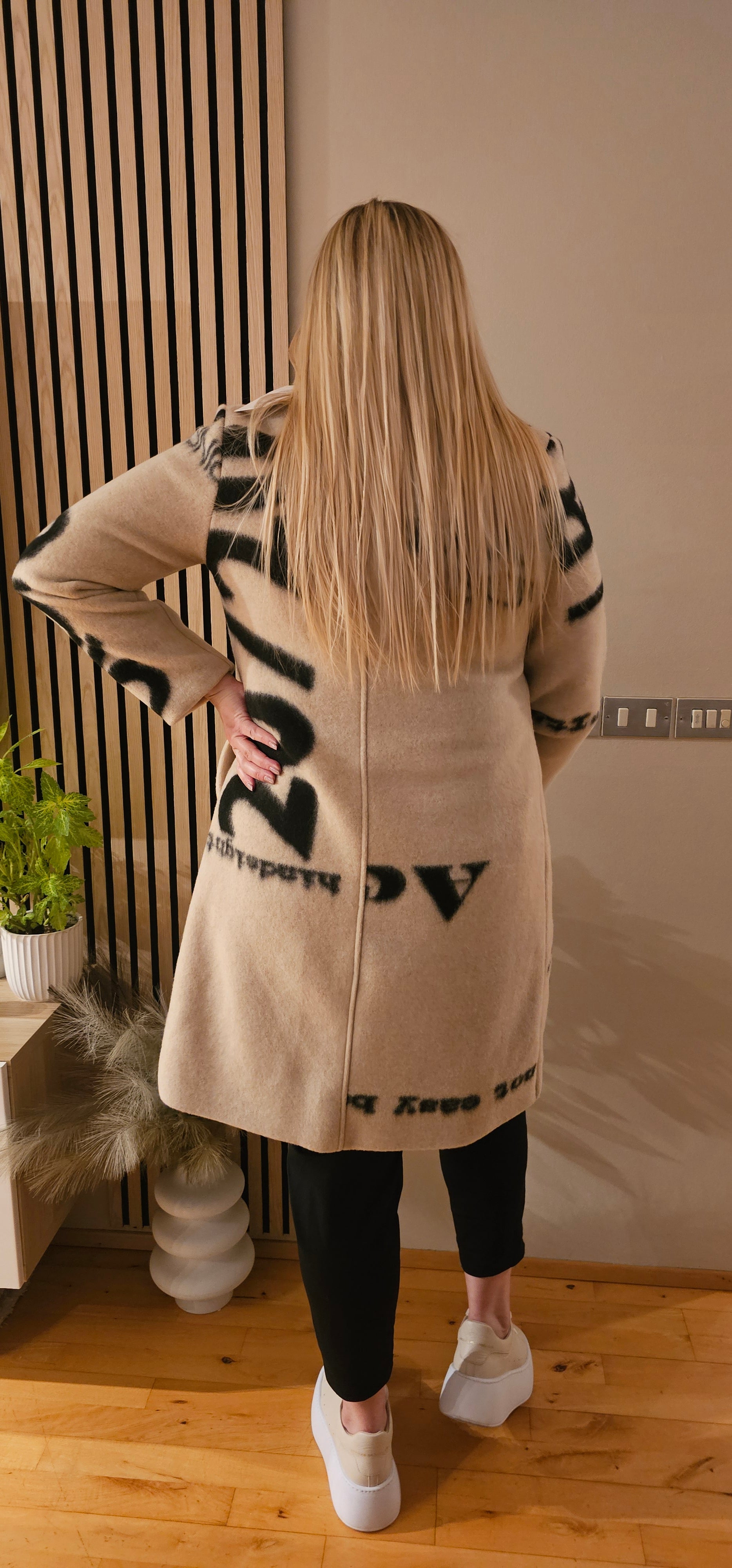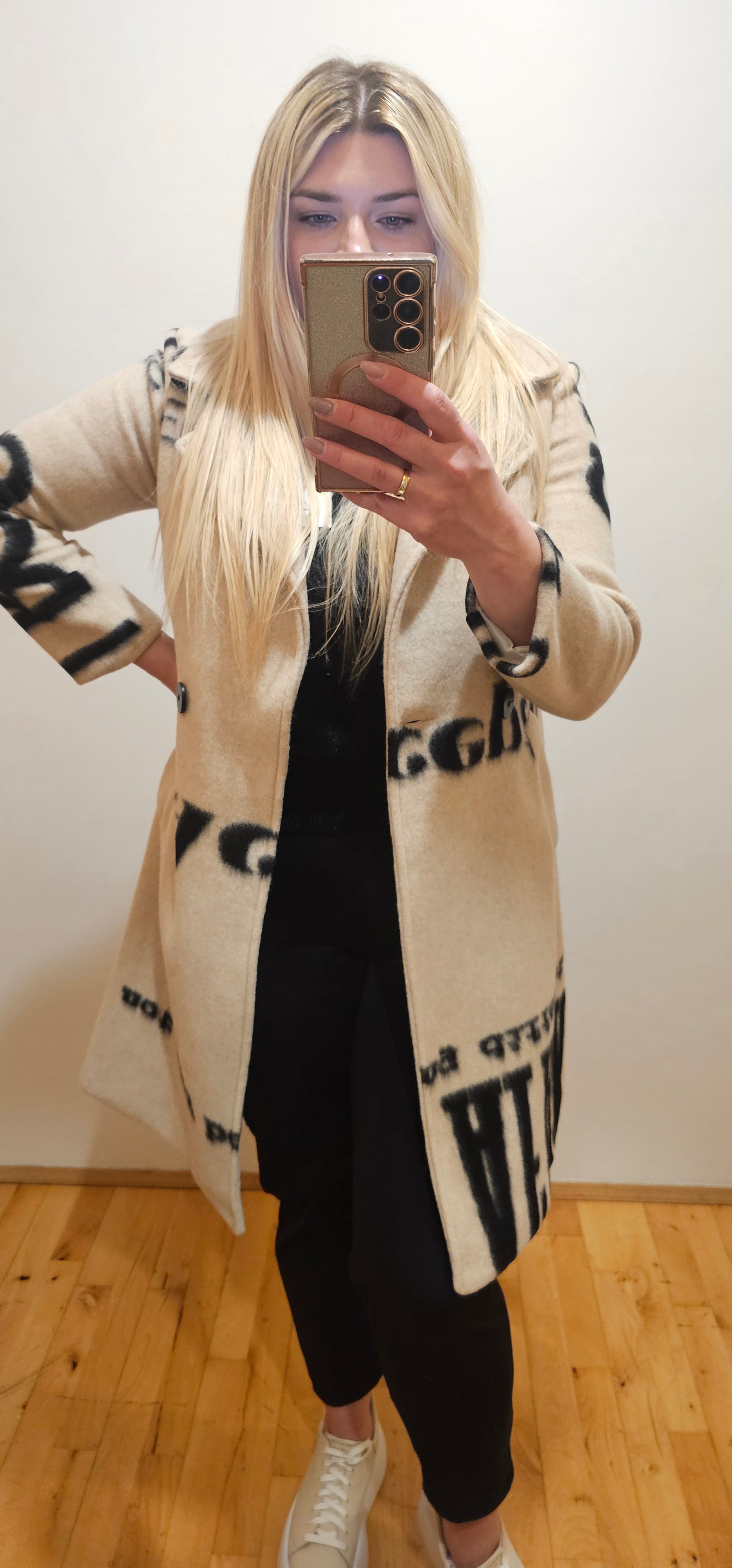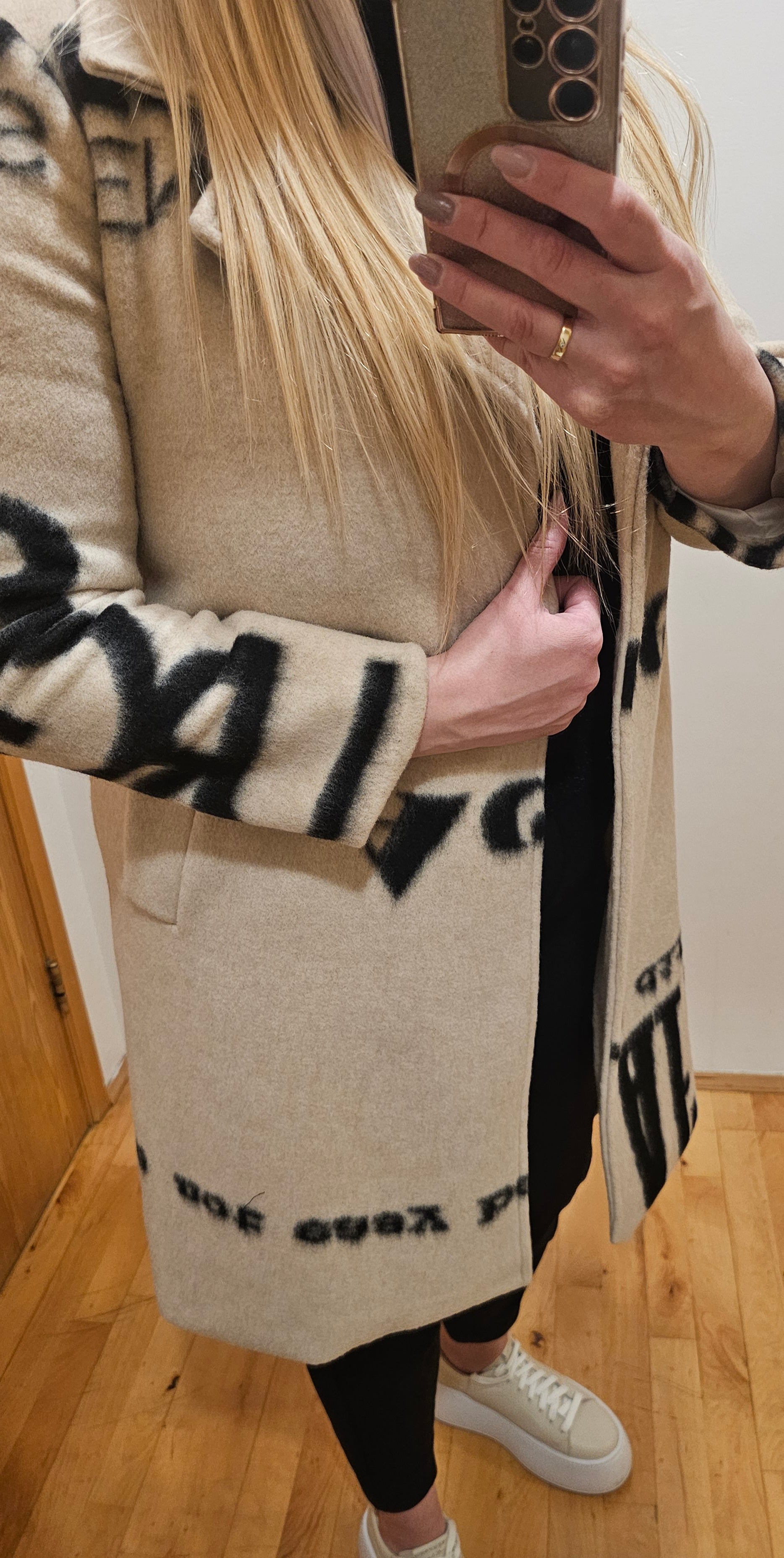 Ítalsk kápu með vasa fest með hnöppum með fóðri. Það kemur í tveimur litafbrigðum: falleg beige eða klassískt svart.