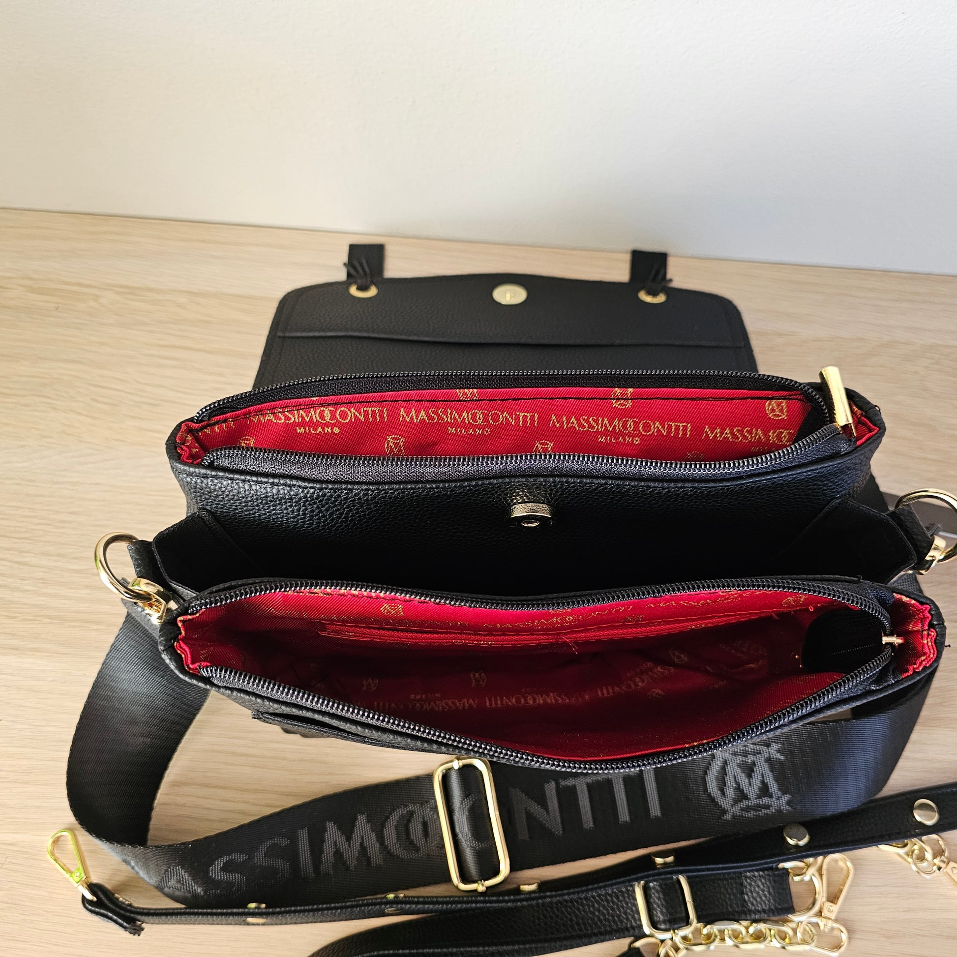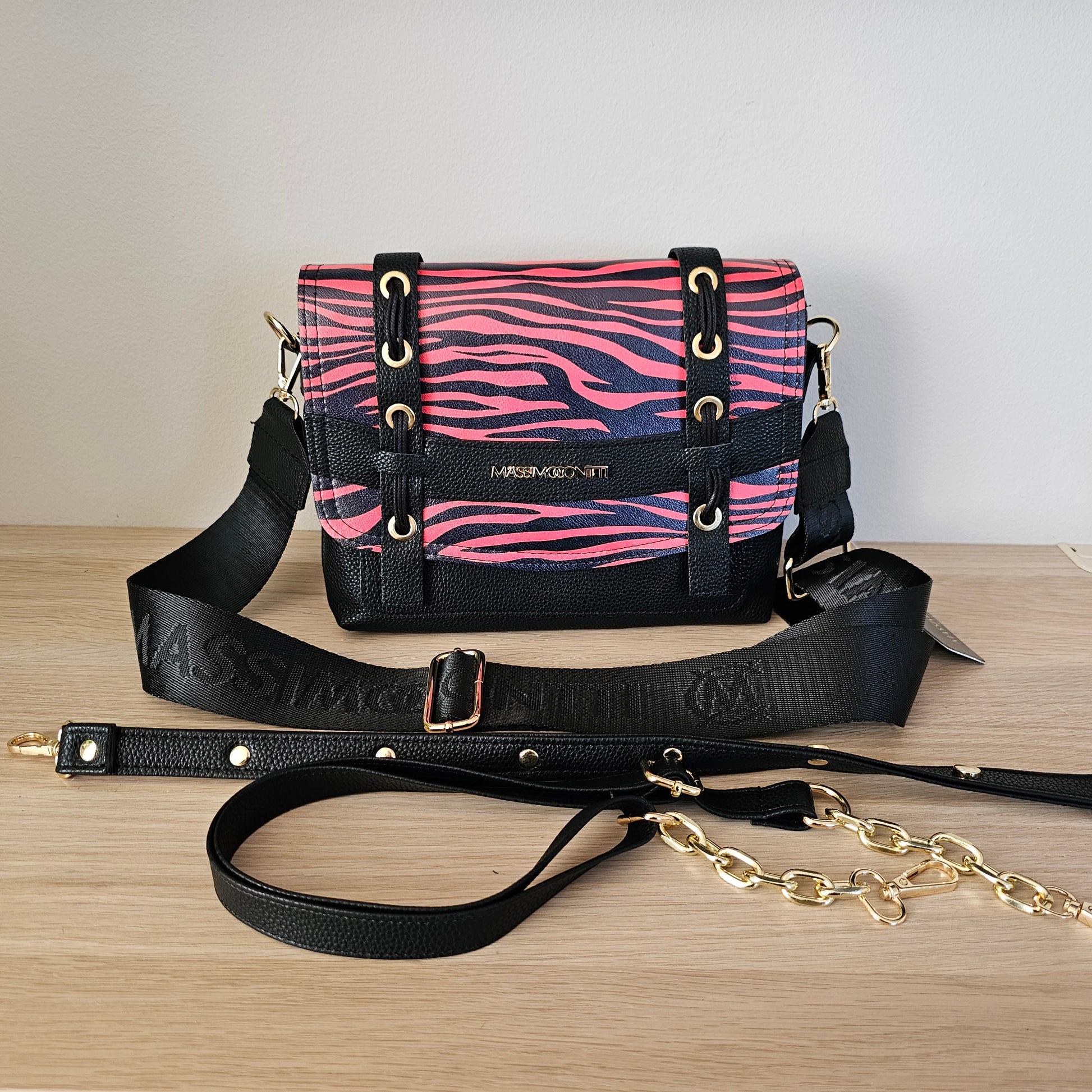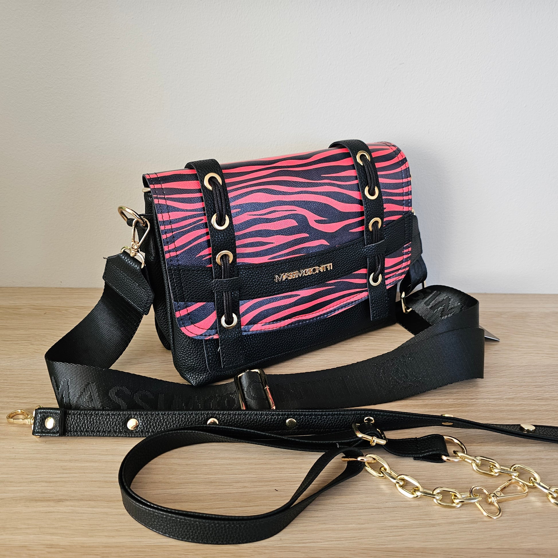 Glæsilegur, mikill ítalskur tösku úr vistvænum leðri . Mynstrið á pokanum er rauður sebra. Einstök skreyting á hvaða stíl sem er. Öxl i handpoki.