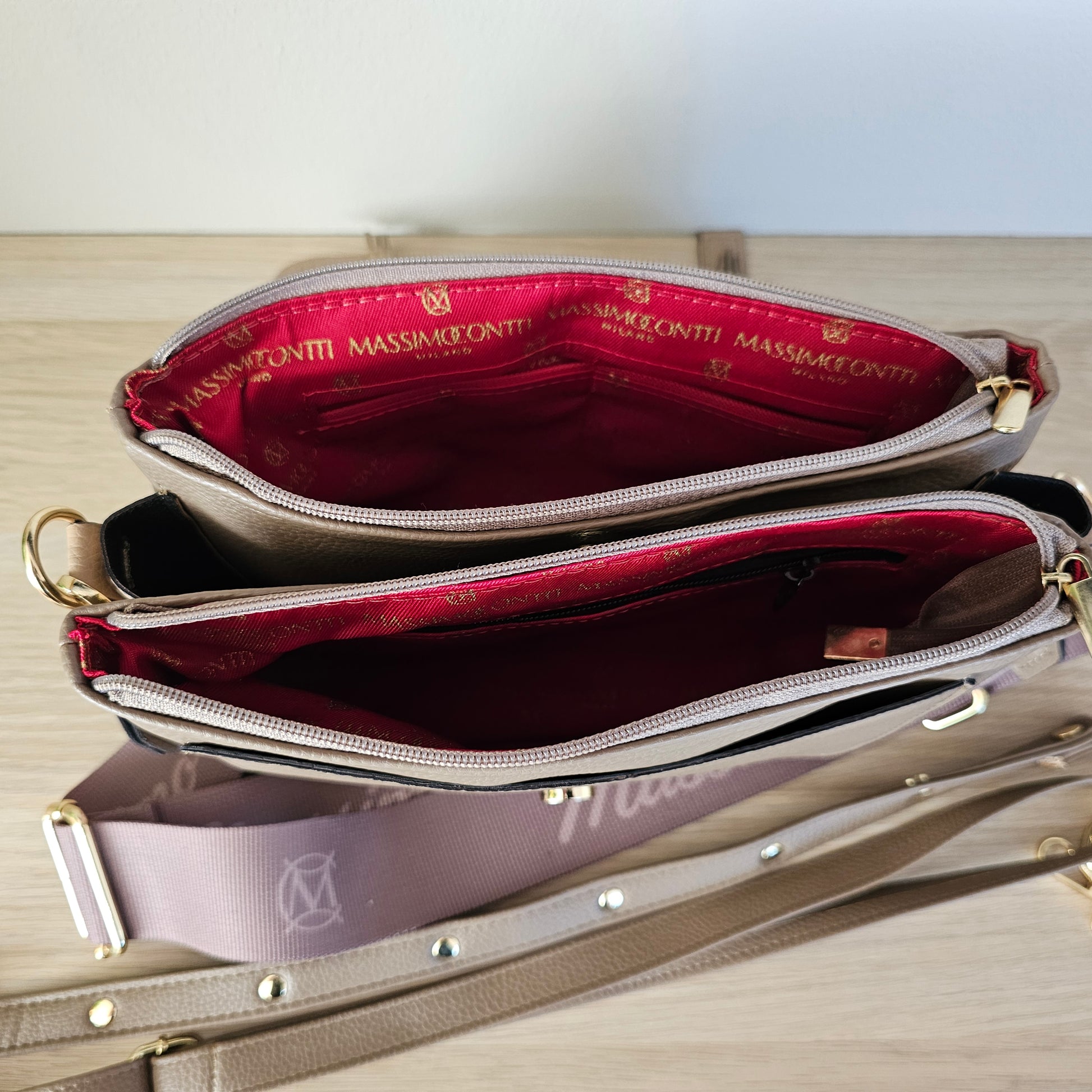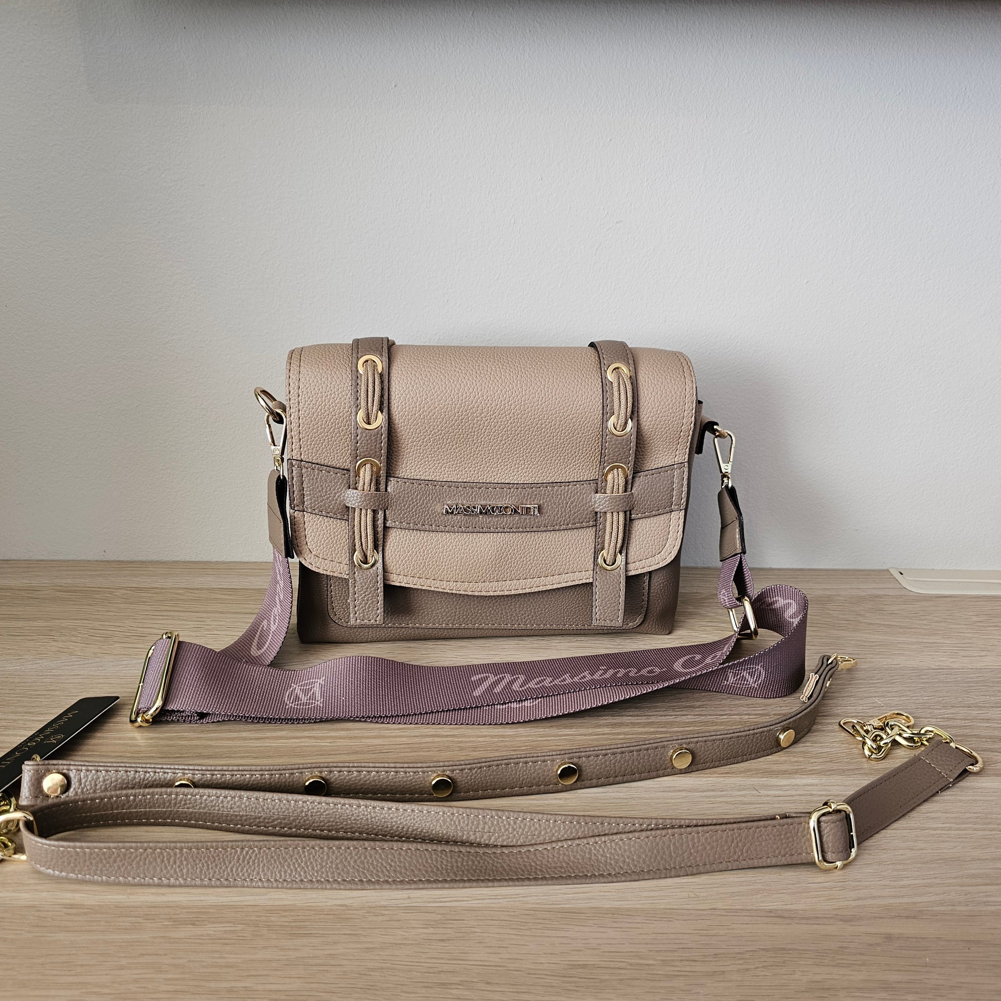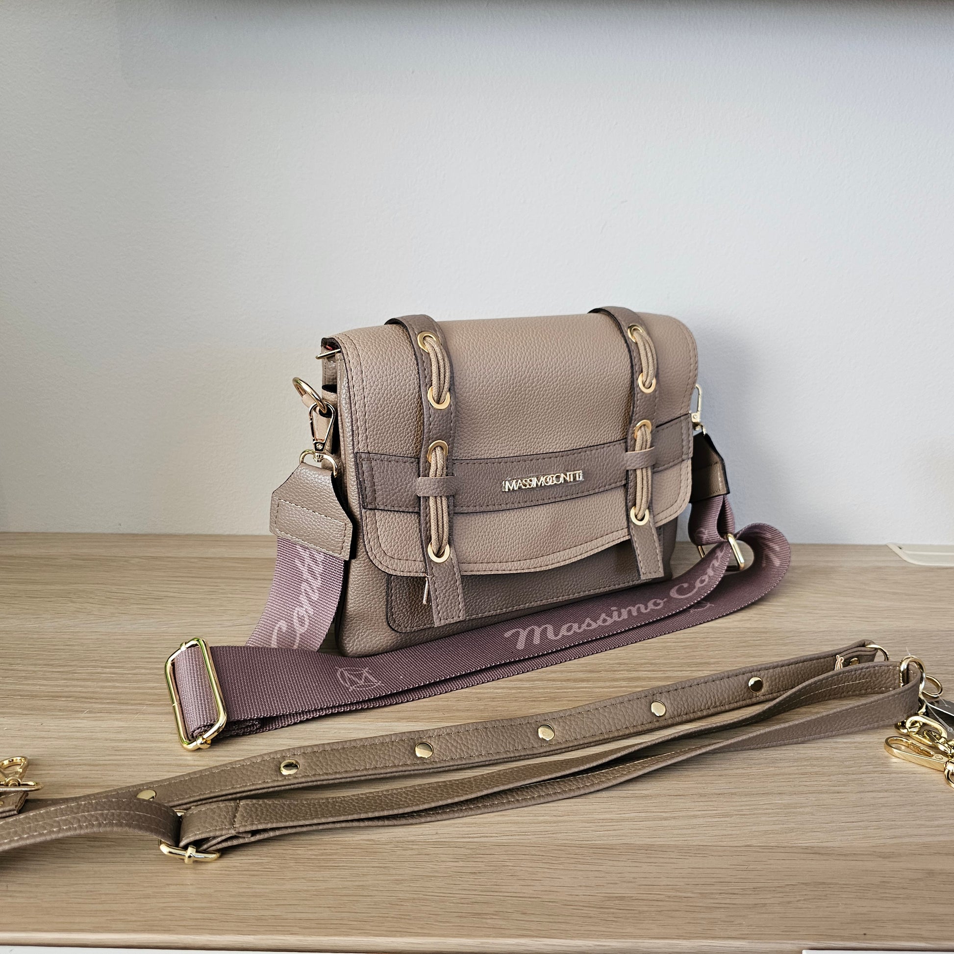 Ítalskur öxlpoki úr vistfræðilegu leðri í setti með þremur öxlböndum