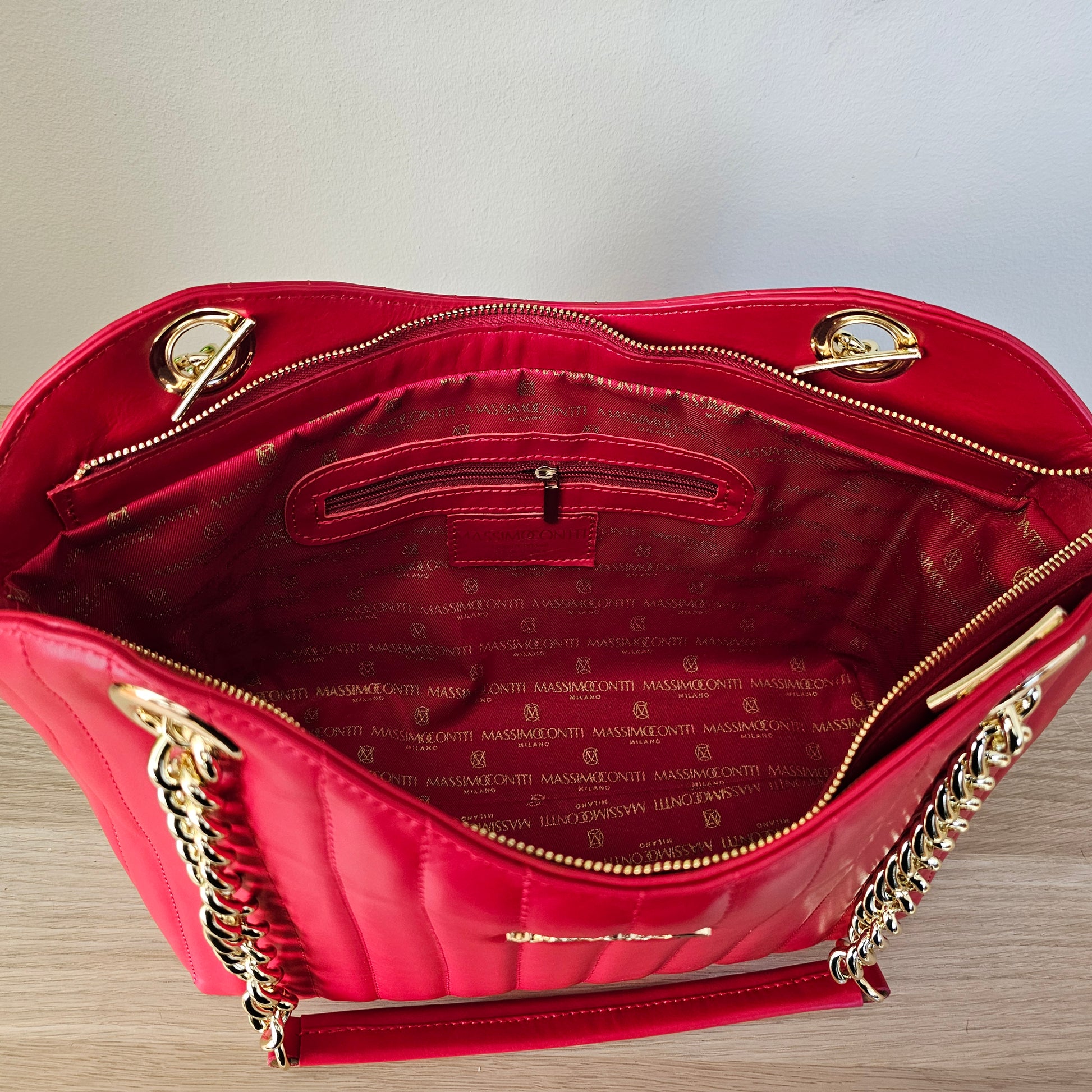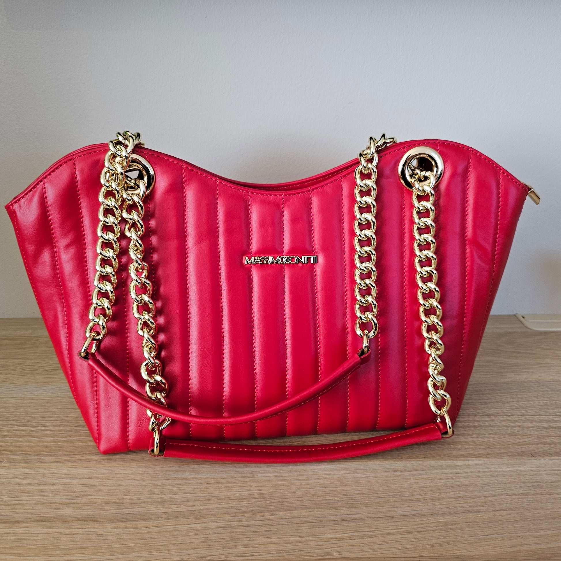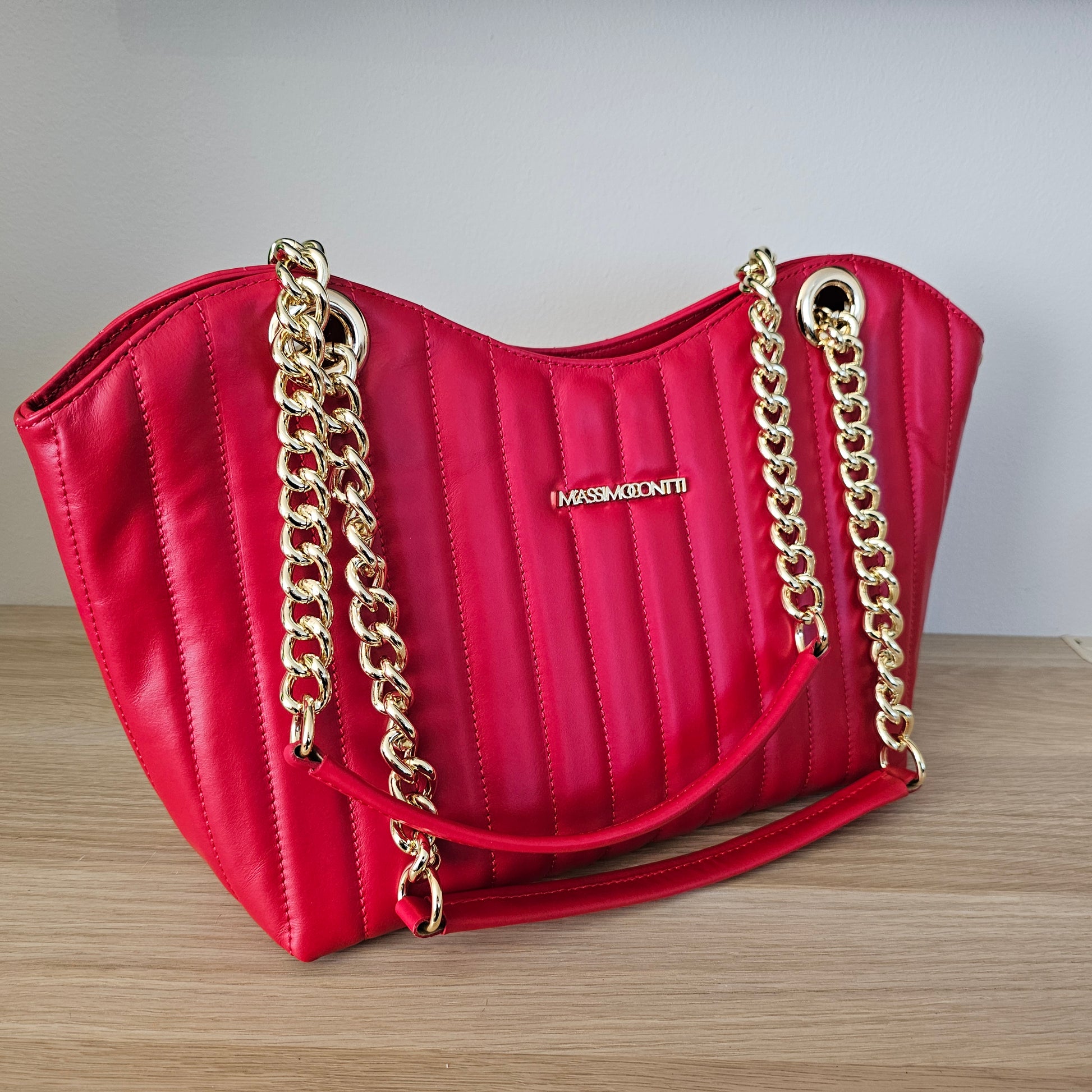 Massimo Contti Luxury Brand - Ítalskur rauð leðurtaska með keðjum
