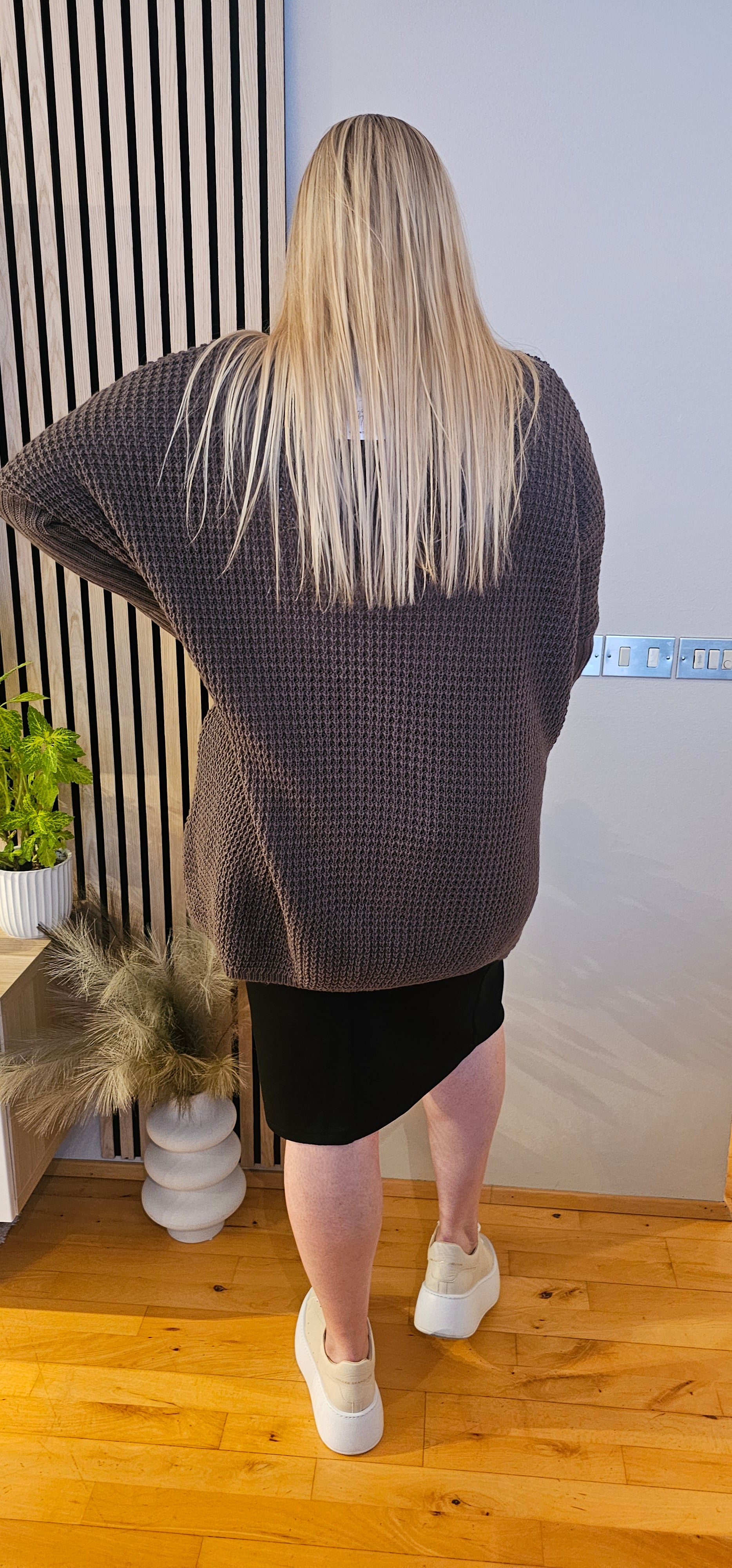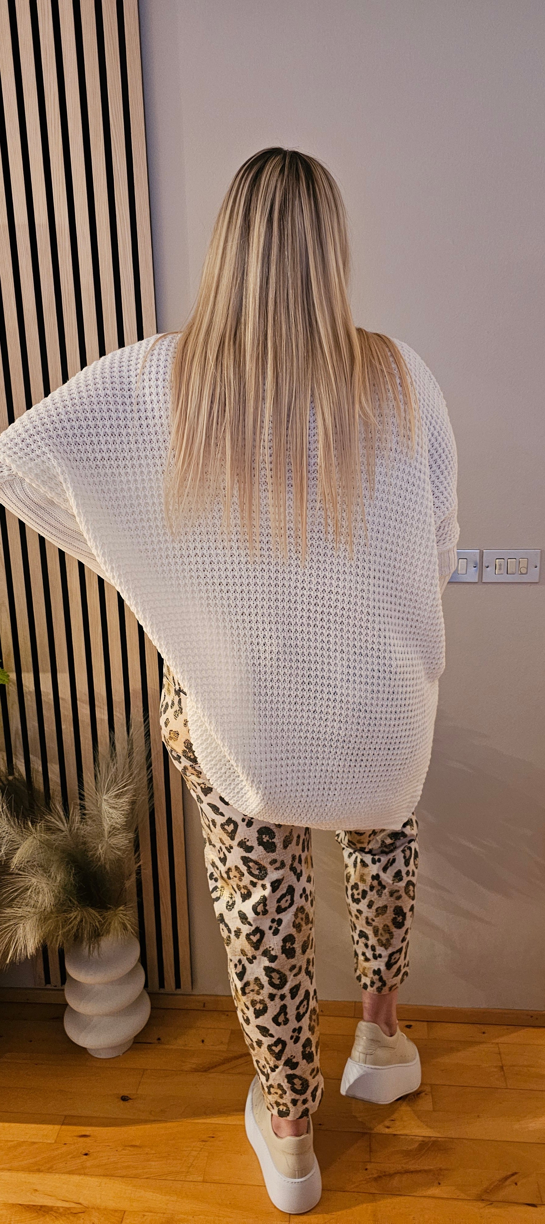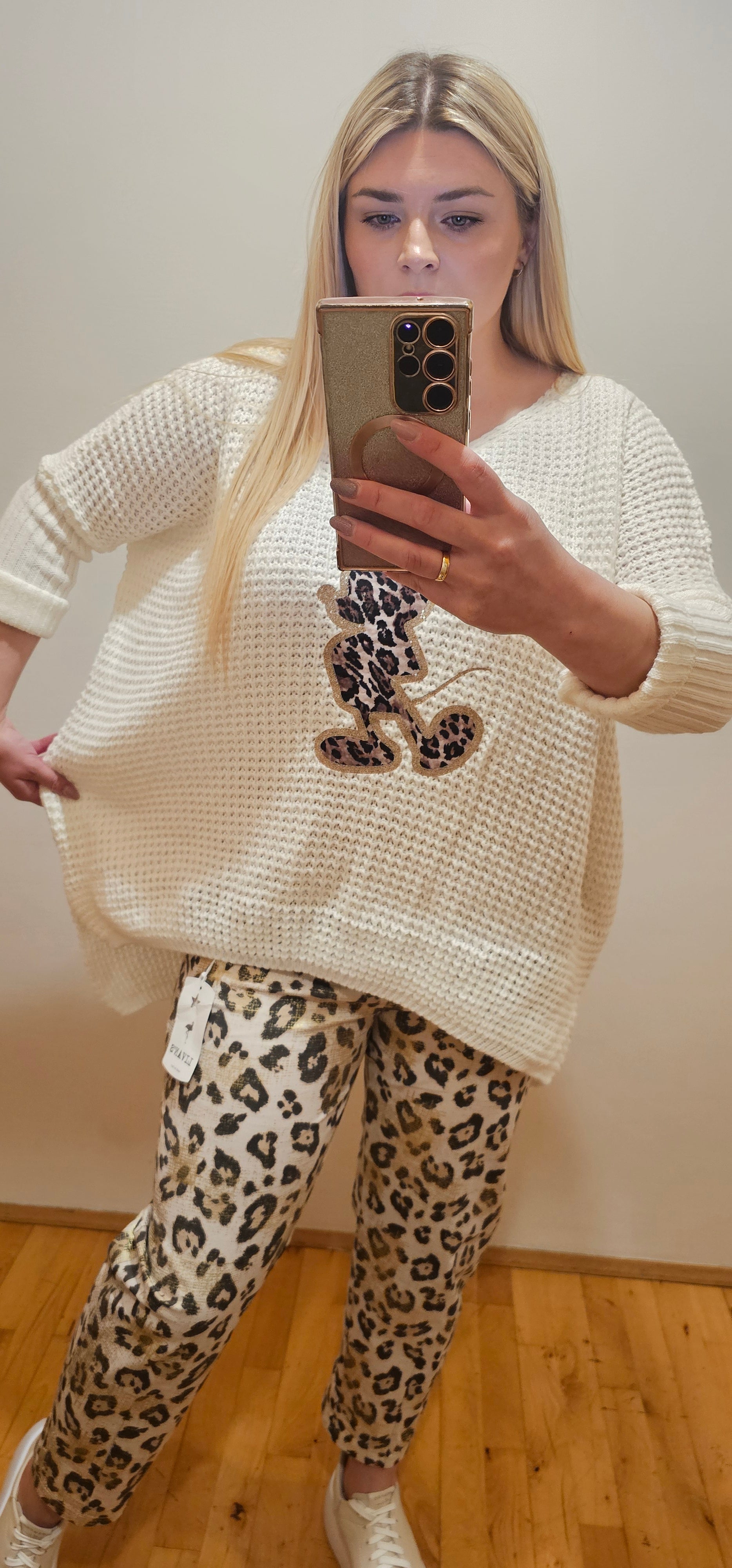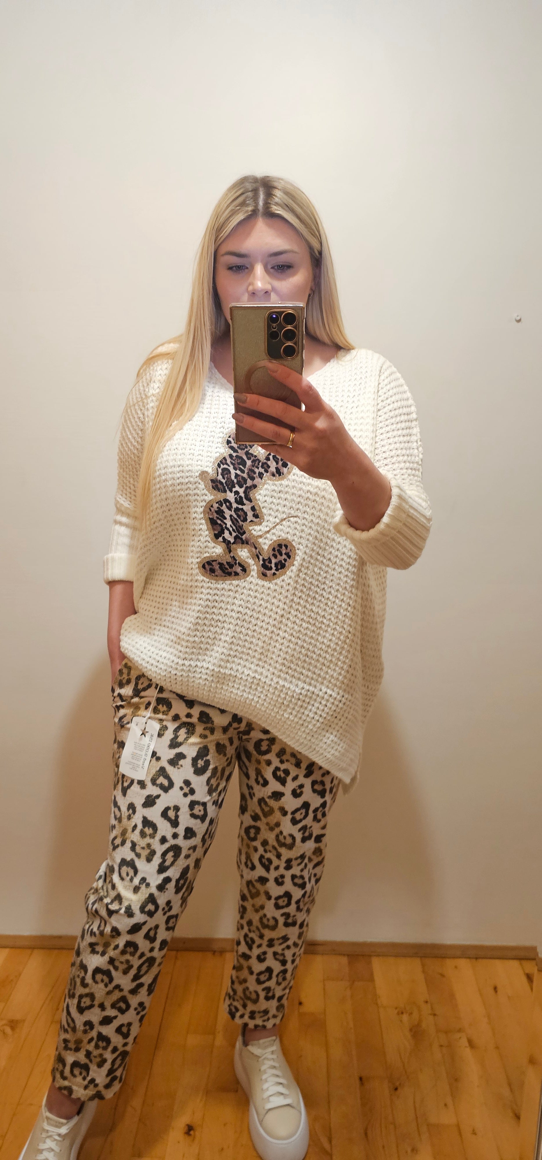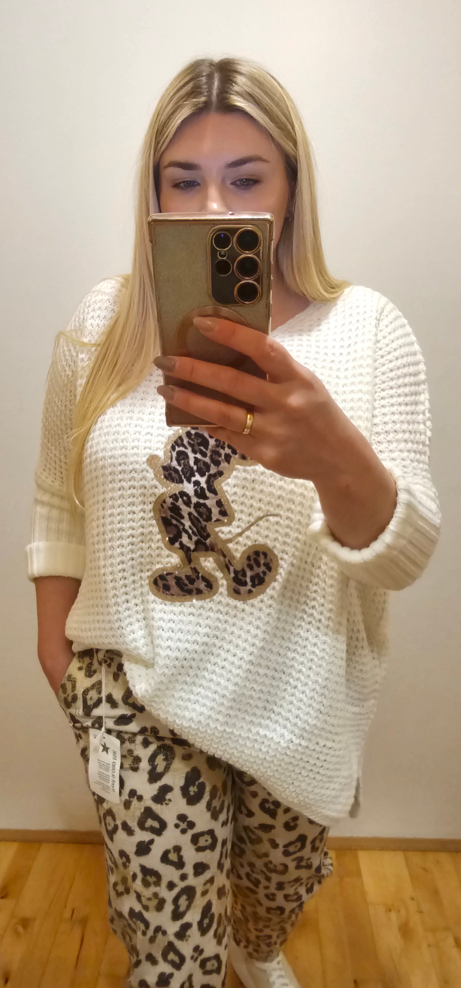 Leopard Mouse peysa. Ofstærð peysa. Framan styttri, að aftan lengur.