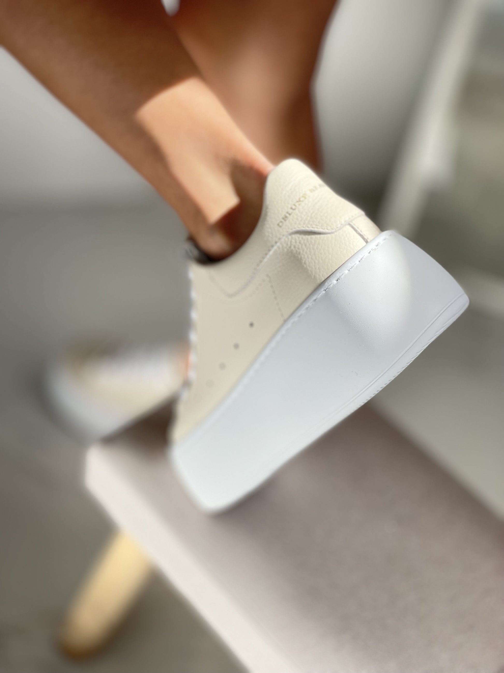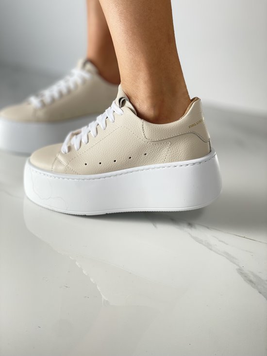 Beige strigaskór með þykkum botni úr náttúrulegu leðri